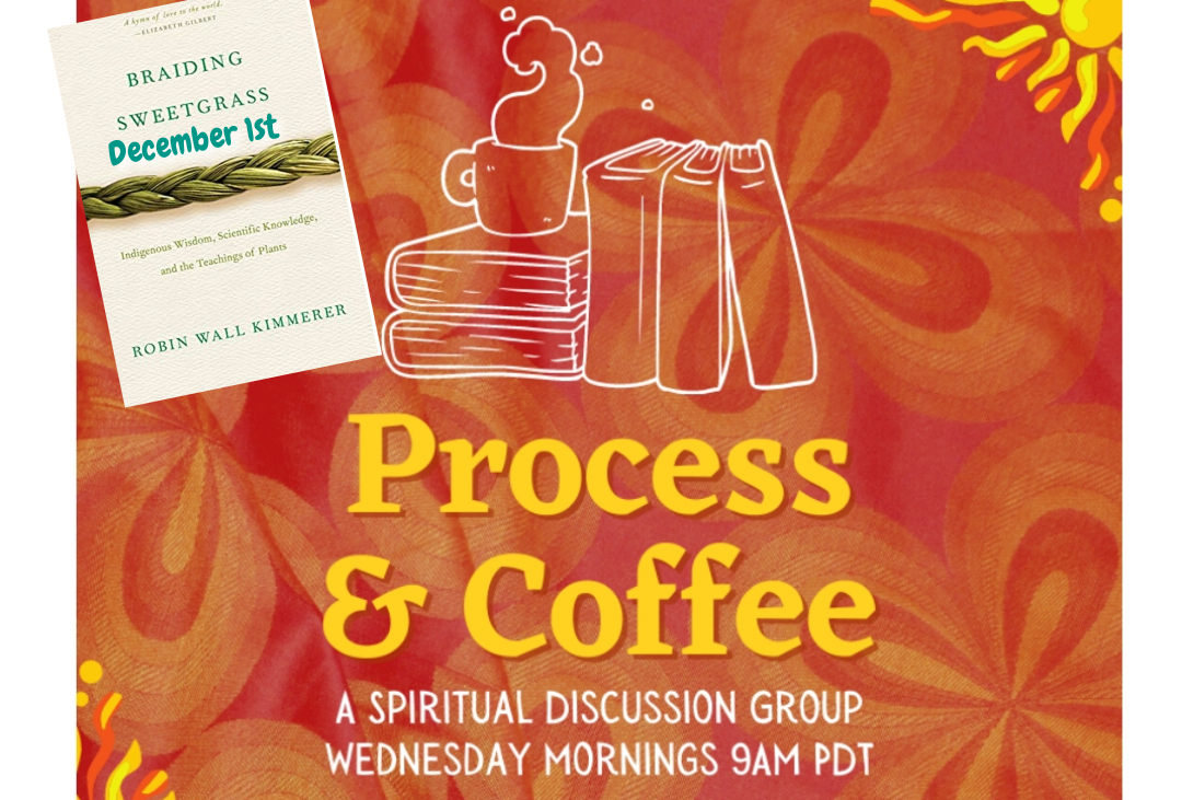 Process & Coffee is about spiritual integration and exploration. We meet weekly to dive into books by mystics and sages. The discussion that follows helps to deepen our own spiritual lives. We will begin Braiding Sweetgrass by Robin Wall Kimmerer, on December 1st. Purchase the book at the Cobb Institute bookstore.